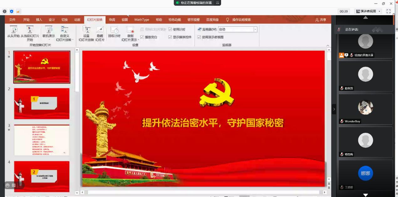 接下来,钱瑞同学又结合几个具体案例,向支部成员介绍了他国情报机关的窃密手段以及泄密的重要危害。并总结了相应的经验教训,警示各位同学如果在涉及到涉密事宜时要高度警觉,合理应对。