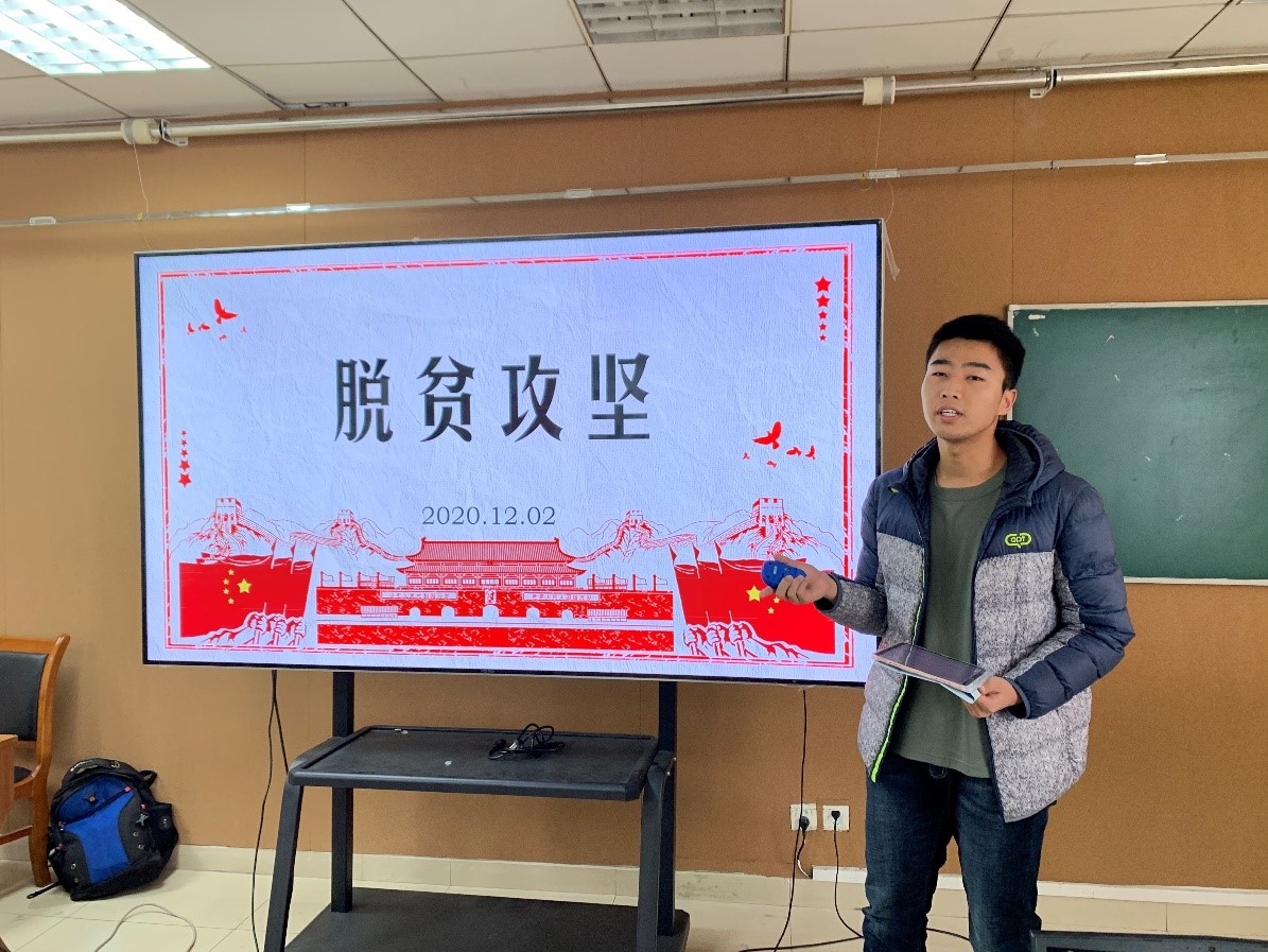 接着,由王喆同志开始了关于“脱贫攻坚”主题的讲解。王喆首先介绍了11月23日贵州省最后9个贫困县“摘帽”的新闻:11月23日,贵州省宣布最后的9个贫困县退出贫困县序列,而这也意味着全国总共832个贫困县全部脱贫摘帽、意味着我国脱贫攻坚的事业取得全满成功。