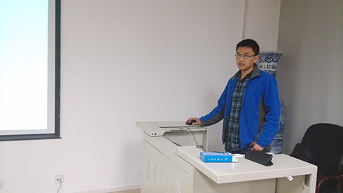接着由硕士研究生李霜天做宣讲,他的研究方向是仿生学研究与人工智能。针对提出了基于人工物理力的不完全视角改进Vicsek模型,李霜天从基本概念与研究目的,基于势场力的避撞、不完全视角机制和仿真讨论四个方面与在座的学生进行了交流,增进了学生们对这种改进Vicsek模型的理解。