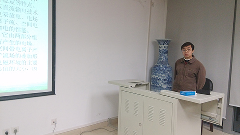 接下来宣讲的是博士研究生张月魁,他的研究方向是特高压下空间电荷分布研究。报告中,张月魁博士对特高压直流输电线路周围空间电荷的产生原理、计算方法、测量技术进行了详细介绍,并指出了我国进行该方面测量的必要性,并就空间电荷密度的计算方法和测量方法做了较为详细的介绍。