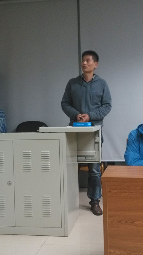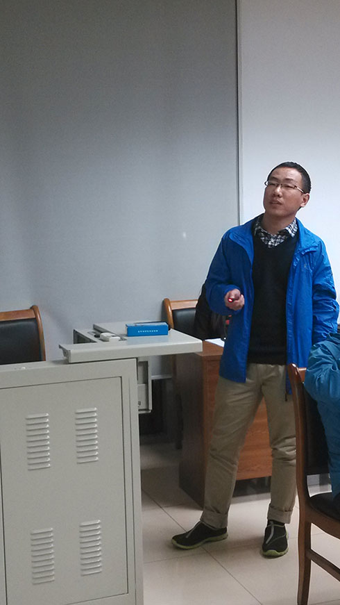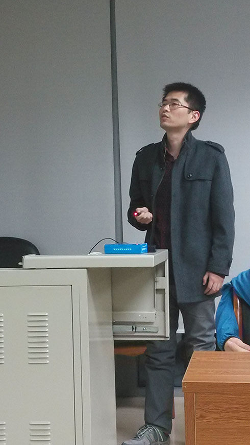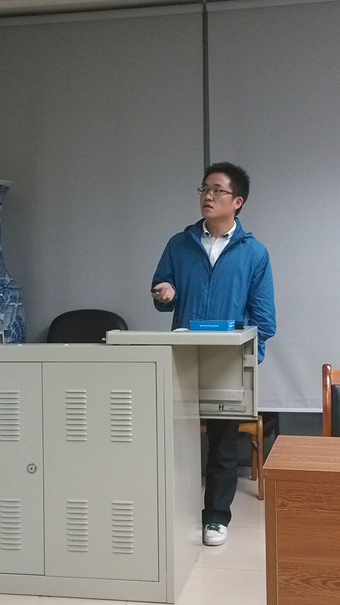 首先由祝国强博士进行宣讲,他的研究方向是飞行器非线性控制。祝国强博士为大家介绍了目前高超音速飞行器的研究现状及关键性问题,并针对一类带有未知输入死区及扇区非线性的高超声速飞行器,提出了一种自适应动态面控制方法,并为大家详细介绍了该方法的原理和特点。最后,祝国强博士就参会同学关于动态逆的提问做了详细回答。