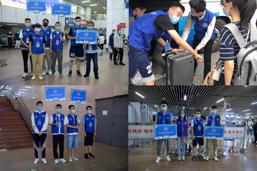 我们在北京西站1-4出站口分别设置迎接组,并由志愿者引导出站新生前往集合点,经过消毒、查验健康码、体温测量之后,志愿者将分批次带领新同学前往乘车点乘车,并派有专门的志愿者随车。